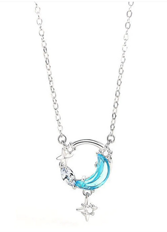 Blue Zircon Moon Star Pendants 925 Silver Collarbone Necklace for Women