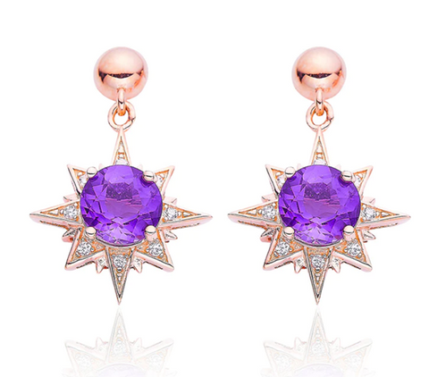 Purple Crystal Stone Solitaire (Rose Gold Colour) Star Studs for Women