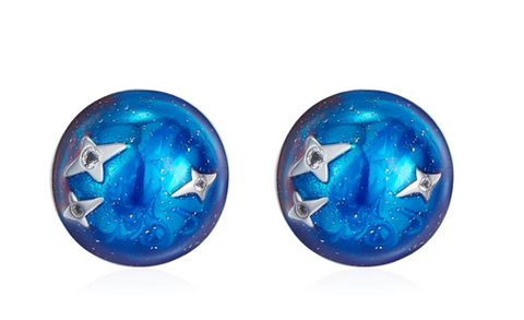 Galaxy Star Light Enamel Silver Studs Earrings for Women