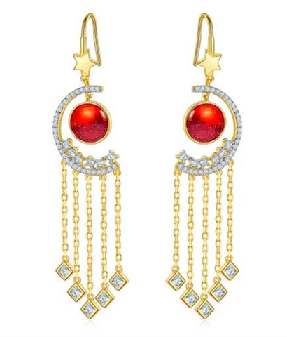Red & Golden Moon Star Enamel Dorp Earrings for Women