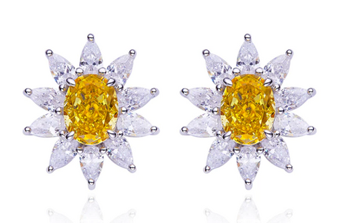 Yellow Zircon(3.2CT) Stone Flower Studs for Women