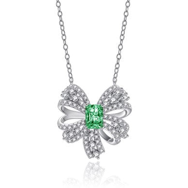 (1.0CT) Green Zircon 5*7mm Rectangle Ice Cut Classical Bowknot Pendants Silver Necklace for Women