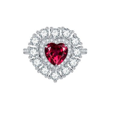 Lab-Created Ruby 7*7mm Heart Shape Soleste Halo Silver Ring for Women