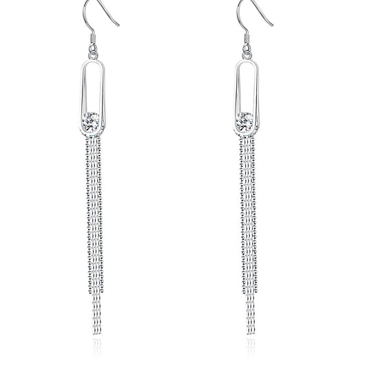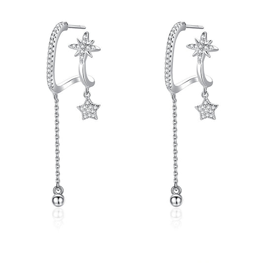 Planderful Sterling Silver Zircon Long Drop Earrings For Women Elegant Light Luxury Star Style