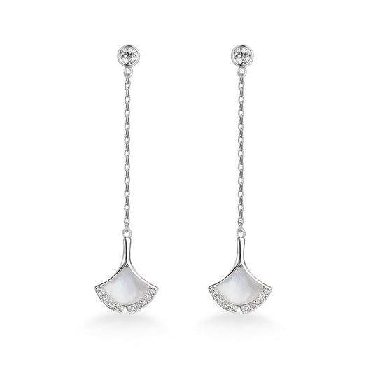 Planderful Pearl Drop Earrings S925 Silver Plated Fan Shape Elegant Freshwater Pearl Pendant For Women