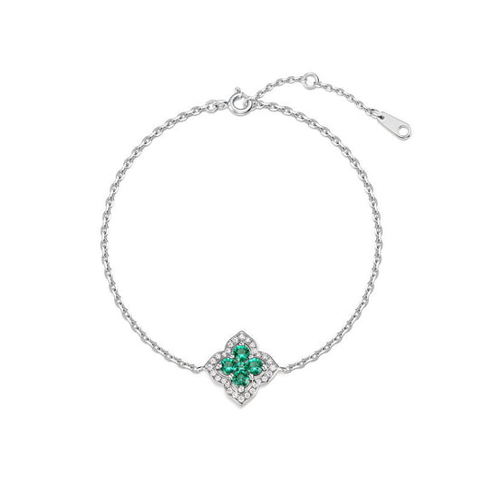 Planderful Gala Fireworks – European and American Light Luxury Versatile Four-leaf Clover Lab Grown Emerald Bracelet High-grade S925 Silver Jewelry