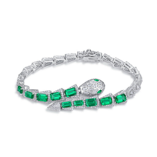 Planderful Cross-border New Personalized Snake Cultivation Color Treasure Set Fashion S925 Silver Inlaid Lab Grown Gemstone Snake Bracelet Women – Elegant and Unique Design