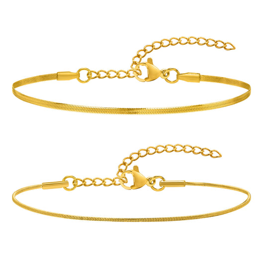 Planderful's golden bracelets have a minimalist and very delicate design. These jewels are ideal to accompany your look without altering the visual balance. Bracelets will always be those classic jewels that you must have in your jewelry box.