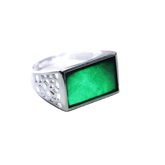Sterling Silver Ring with Natural Ice Emperor Green Jade and Vine Leaf Hollow Design