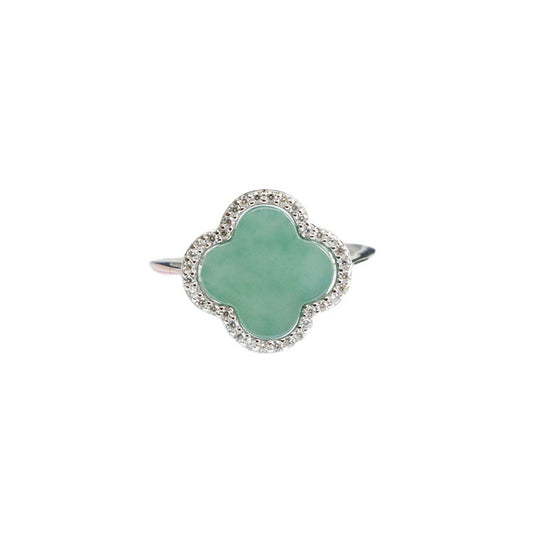 Sterling Silver Adjustable Natural Jade Leaf Ring