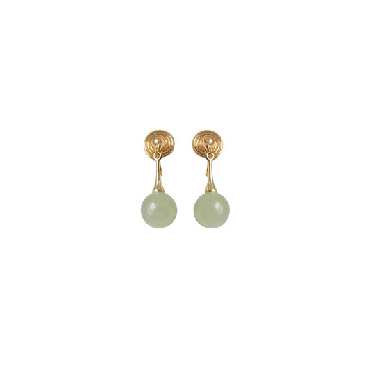 Round Jade Golden Bowknot Stud Earrings crafted from Natural Hotan Jade