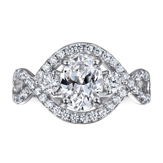 3.0 Carat Oval Moissanite S925 Silver Plated Three Stone Ring