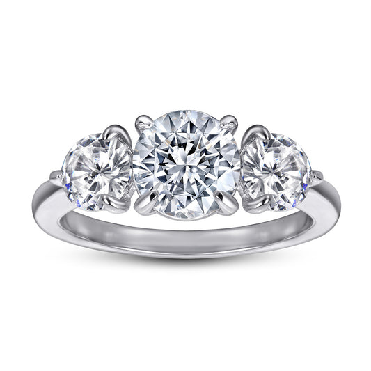 Round and Oval Moissanite Three Stone Engagement Ring