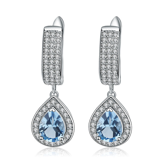 S925 Silver Inlaid Natural Topaz Drop Earrings for Women