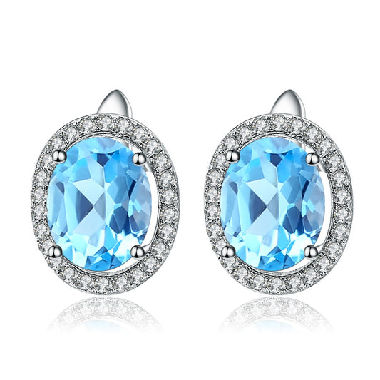 European Inlaid Natural Topaz Personality Oval Shape Silver Studs Earrings for Women