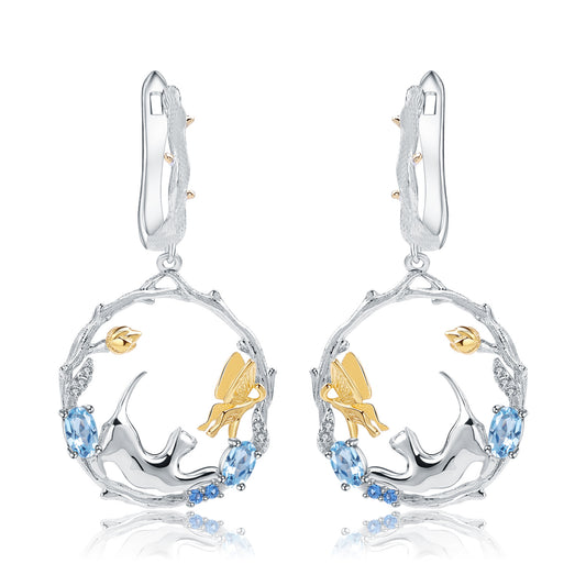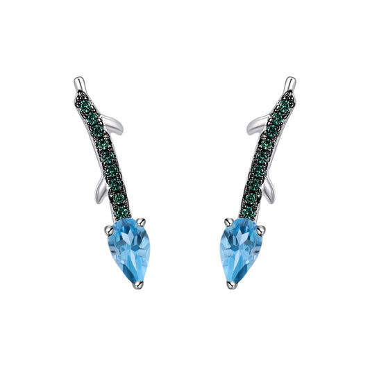 Bird's Plume Design S925 Silver Natural Topaz Drop Earrings for Women