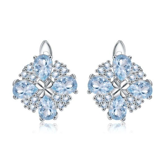 Flower Bud Retro Designer s925 Silver Inlaid with Topaz Earrings for Women