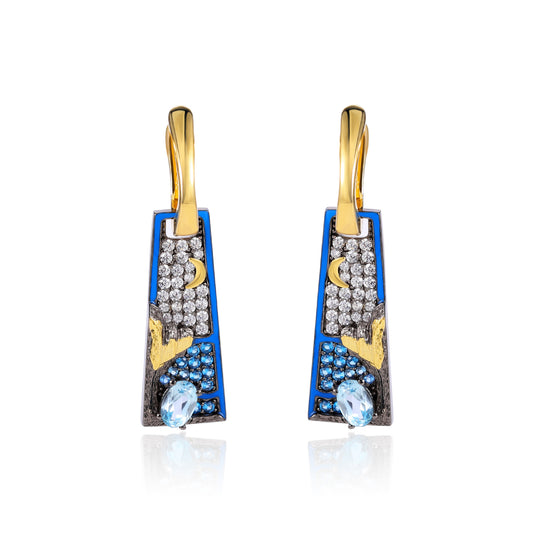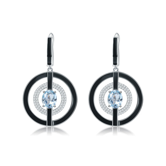 Natural Topaz Enamel Ring Design Silver Drop Earrings for Women