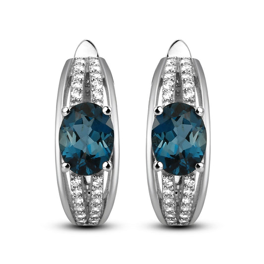 European Inlaid Natural Topaz Soleste Halo Oval Shape Silver Drop Earrings for Women