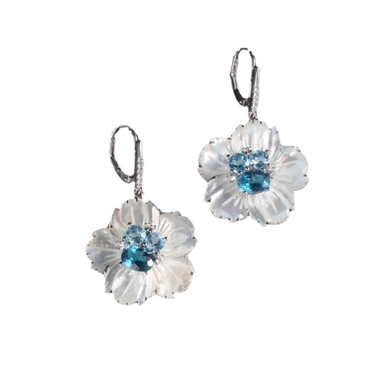 Natural Topaz with Shell Material Flower Silver Earrings for Women
