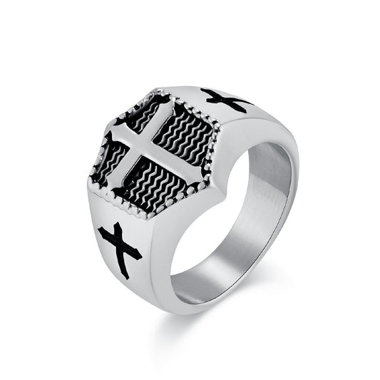 Cross-Border Retro Titanium Steel Cross Ring for Men