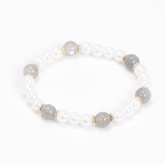 Moonstone and Freshwater Pearl Sterling Silver Bracelet