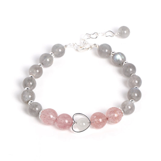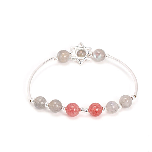 Sweet and Minimalist Strawberry Crystal Bracelet with Personalized Fishtail Design and Moonlight Stone, Korean Edition: Sterling Silver Handwear for Women