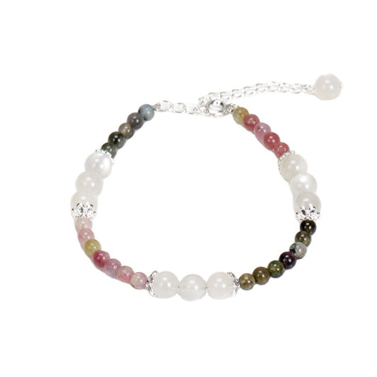 Chinese Style Crystal and Jade Beaded Bracelet with Moon Tree Pendant