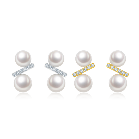 Planderful Sterling Silver Pearl Earrings With Natural Pearl And Zircon Bow Pendant For Women Elegant
