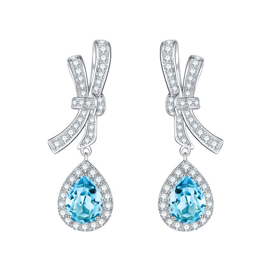 Sky Blue Natural Topaz 6*8mm - Platinum Plated - Drop Silver Earring for Women