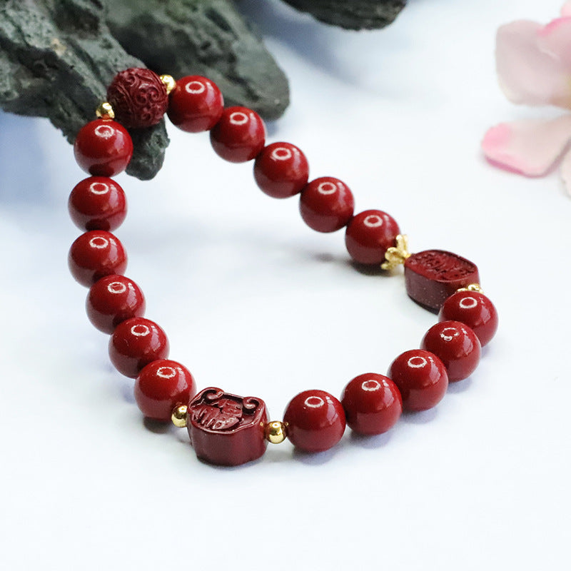 Indulge in the elegant allure of the Cinnabar Bracelet. Handcrafted with exquisite purple gold sand and adorned with back grain beads, this stunning piece from the Fortune's Favor collection is designed to bring you good fortune and timeless style.