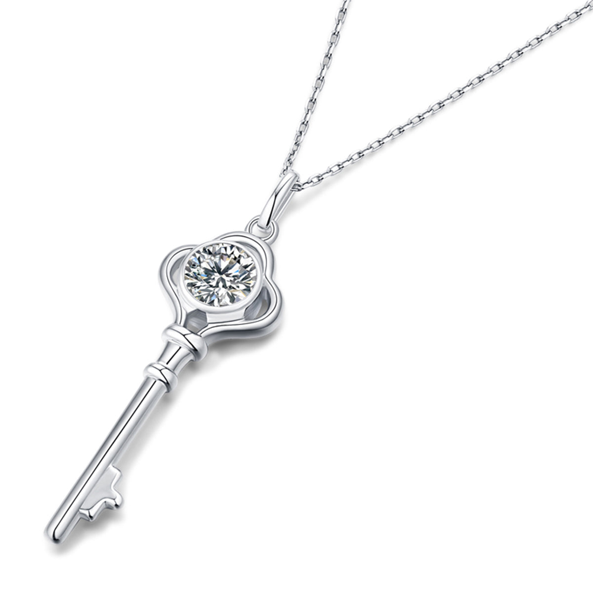 1.0 Carat Round Moissanit S925 Silver Plated Key Pendant Necklace