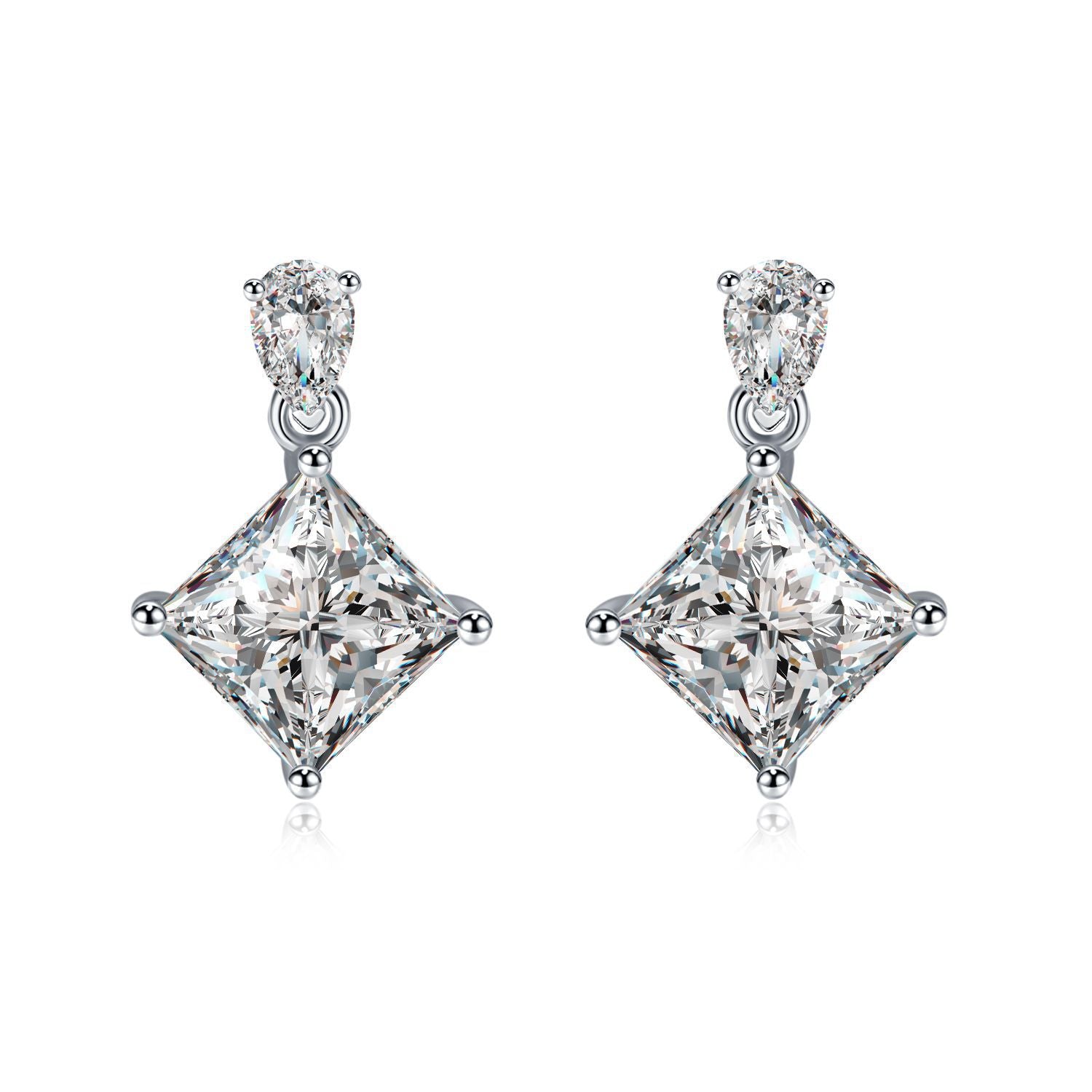 Discover lasting brilliance with Planderful's Moissanite Sparkling drop earrings. Designed for those who value understated luxury, these earrings showcase a 1.0 carat princess-cut moissanite set in sterling silver with platinum plating for a pristine, radiant finish.