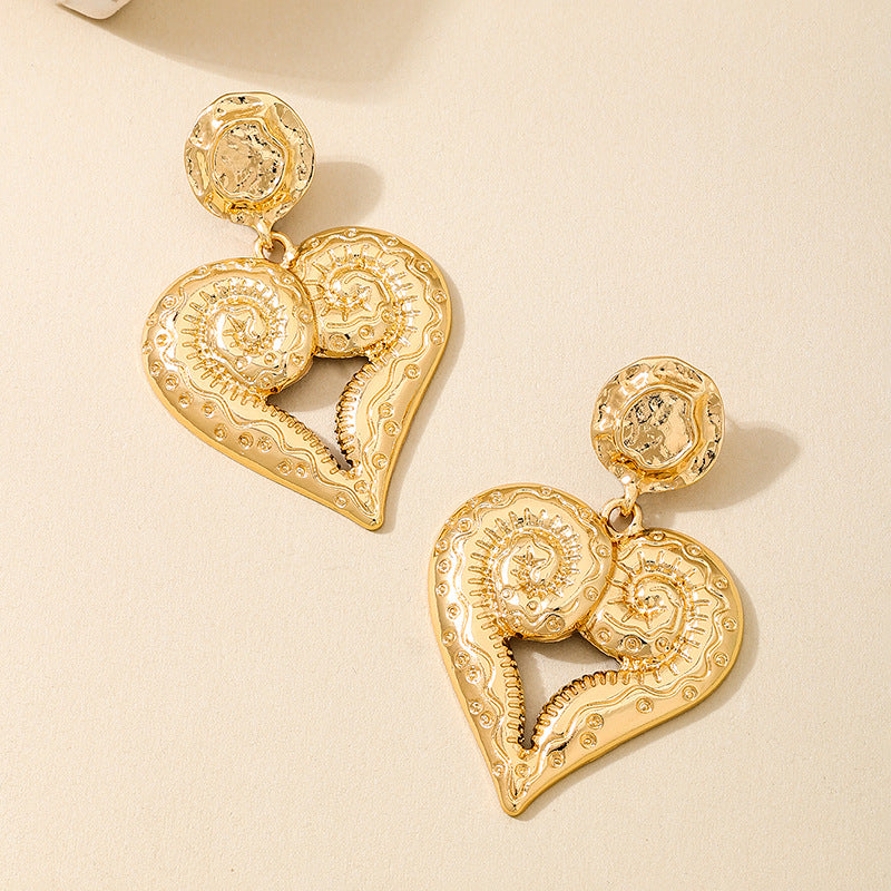 European, American Fashion and Retro Middle Eastern Heavy Metal Gold Conch Love Pattern Ocean Vacation Series Women's Earrings by Planderful delivers a stunning blend of elegance and artistry for your summer getaway or everyday chic look.