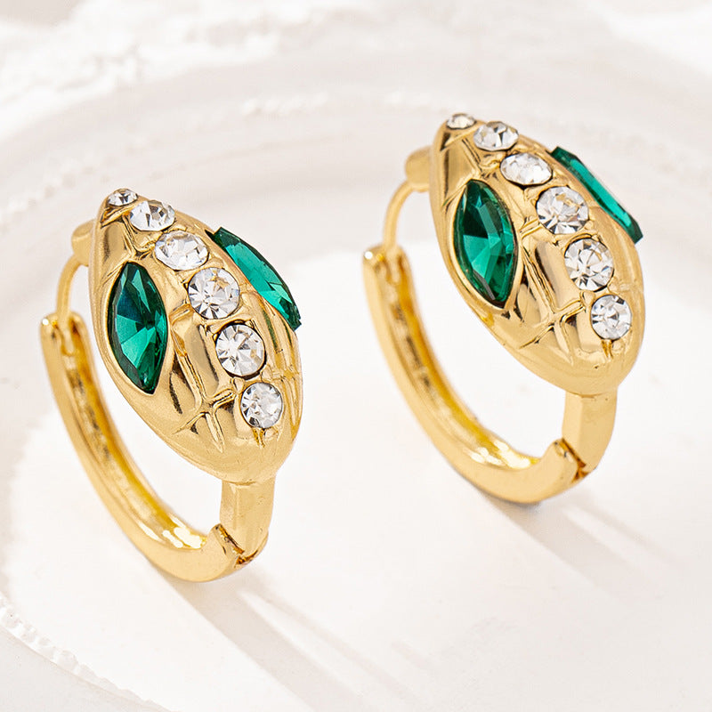 European and American Cross-Border High-End Fashion Personalized Metal Green Zircon Snake Head Geometric Circle Zircon-Set Women's Earrings by Planderful delivers a stunning blend of elegance and artistry for the modern woman looking to make a statement.