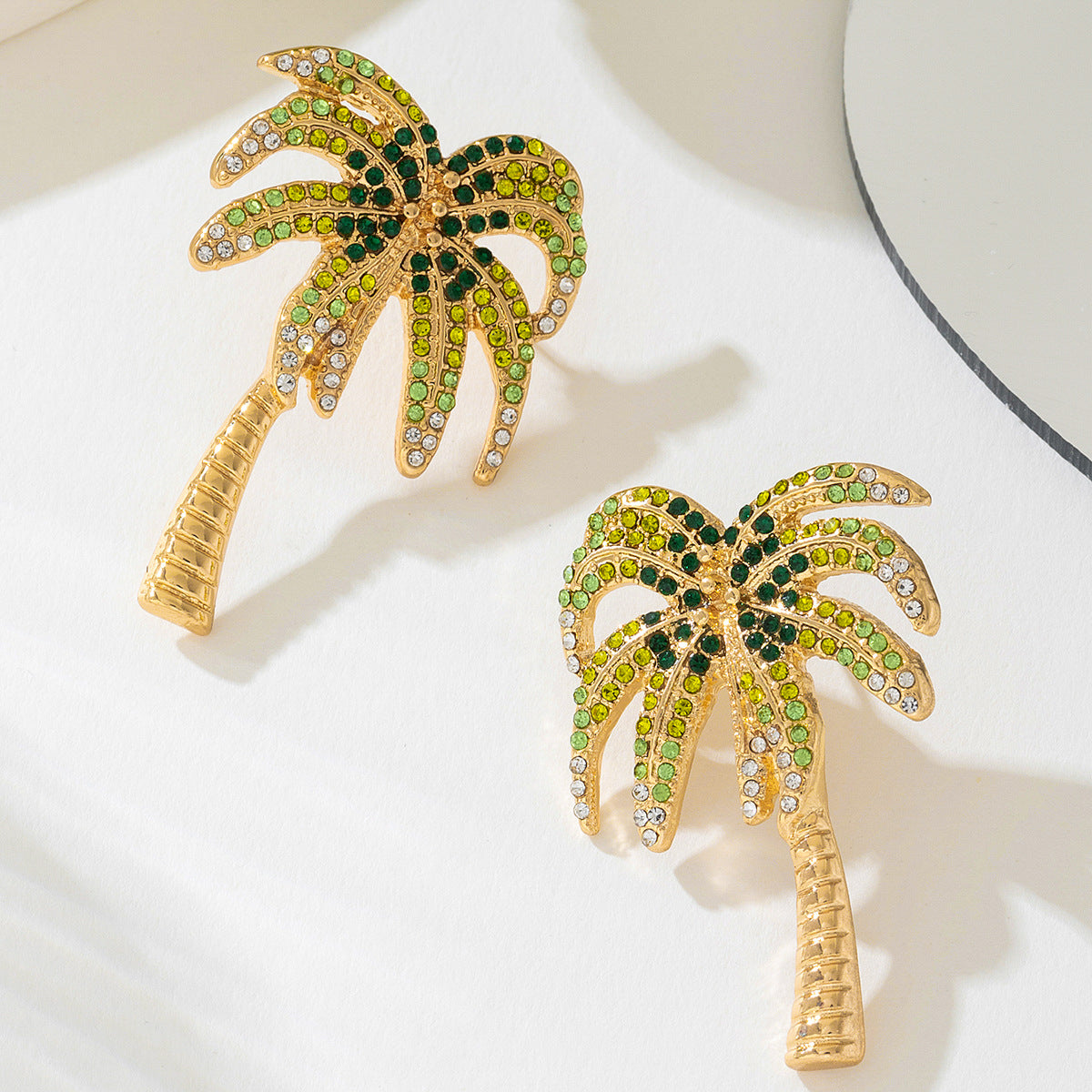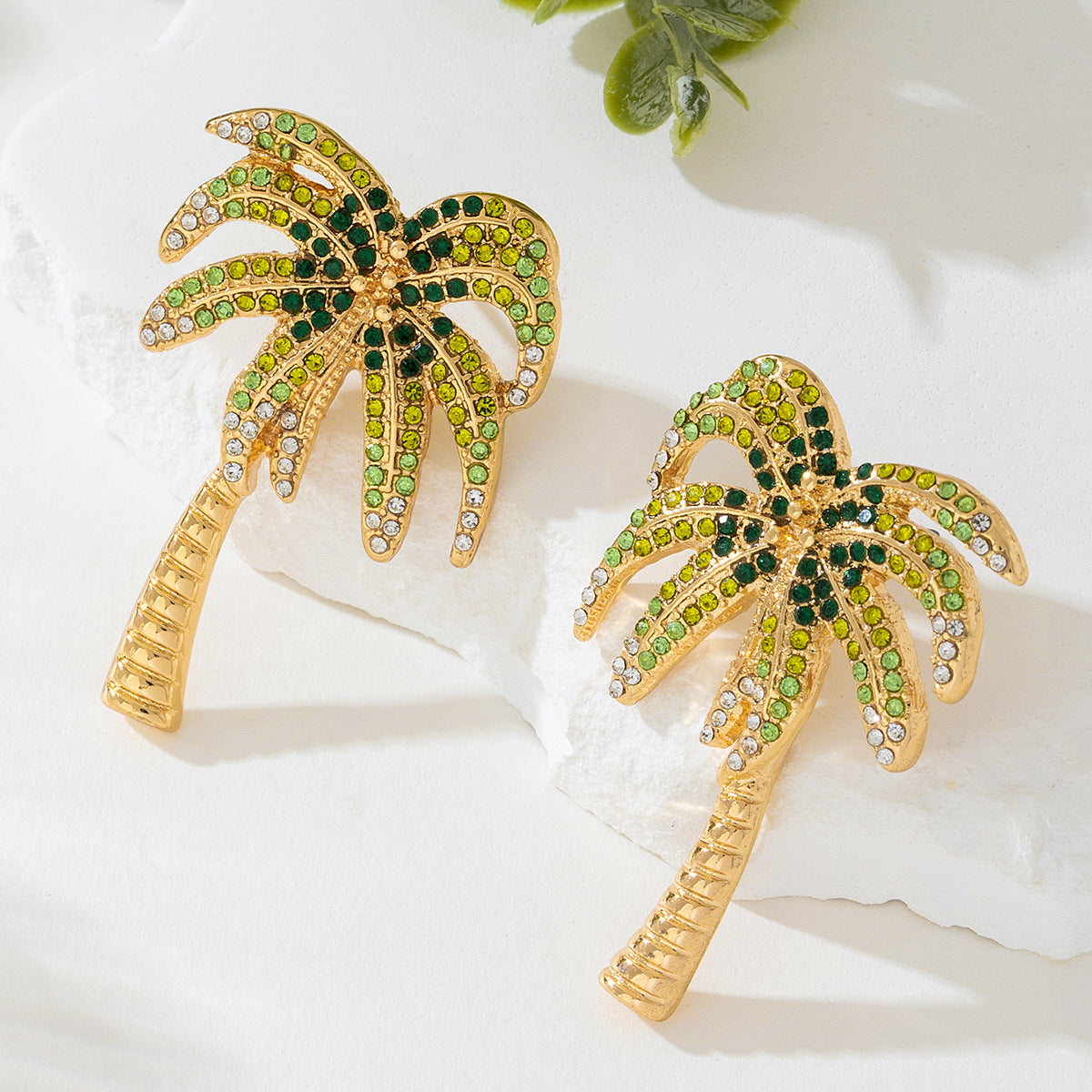 Fashion Exaggerated Personality Creative Color Design Sense Metal Flash Zircon Coconut Tree Women Stud Earrings by Planderful delivers a striking and playful accessory for your vacation wardrobe.