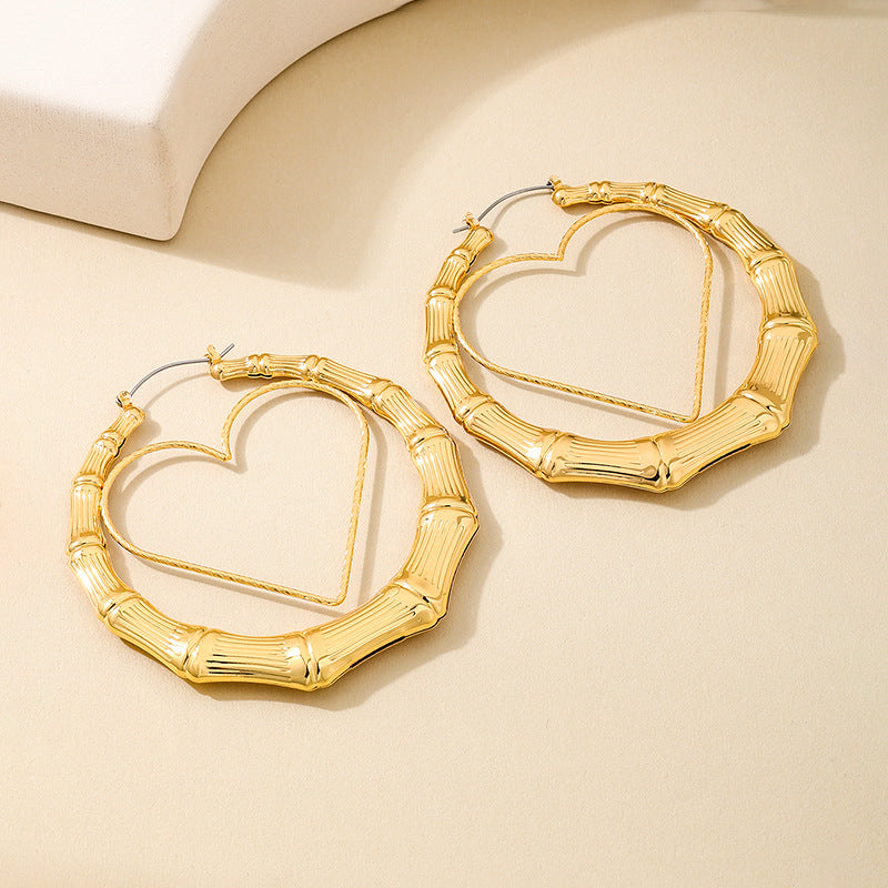 Fashionable European and American Exaggerated Middle Eastern Metal Oversized Geometric Ring Love Women's Earrings by Planderful delivers a bold, stylish statement for the modern woman seeking to elevate her accessory game.