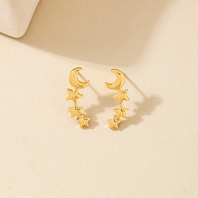 Fashionable, Simple, and Versatile Middle East New Metal Stars and Moon Arcs Women's Stud Earrings by Planderful delivers a touch of celestial elegance for any occasion. These exquisite earrings are perfect for fashion jewelry enthusiasts looking to elevate their accessory game.