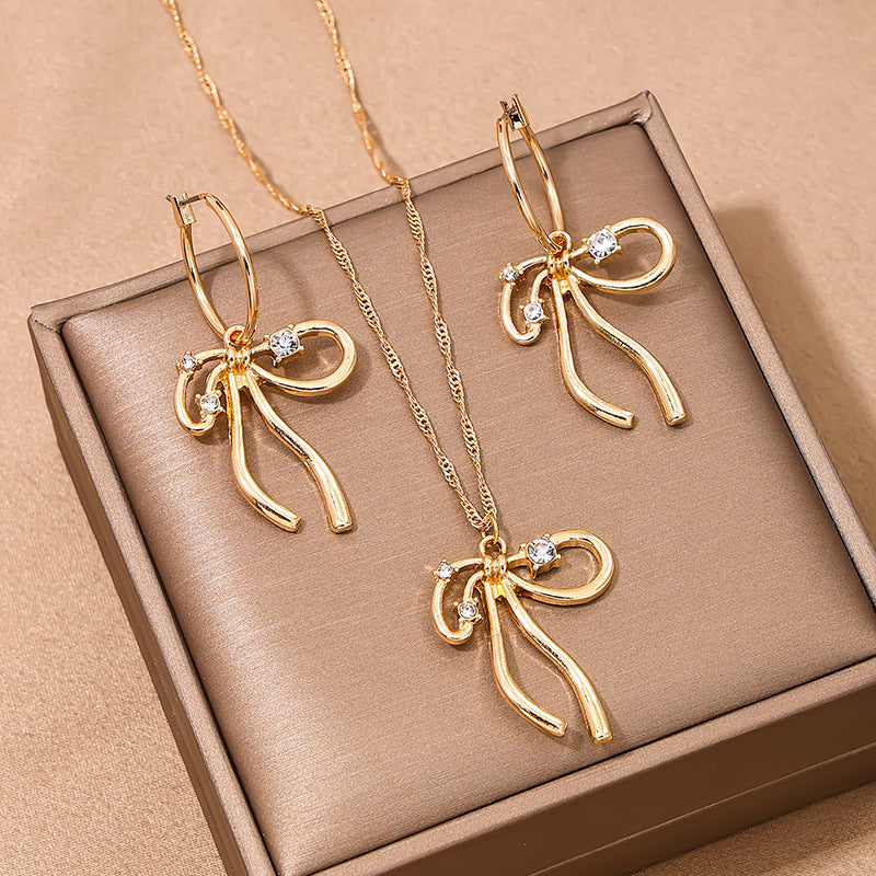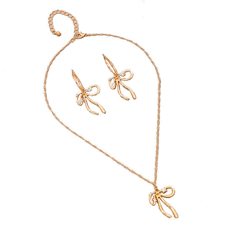 Elegant Bow Necklace and Earrings Set with European Charm and Metal Irregularity