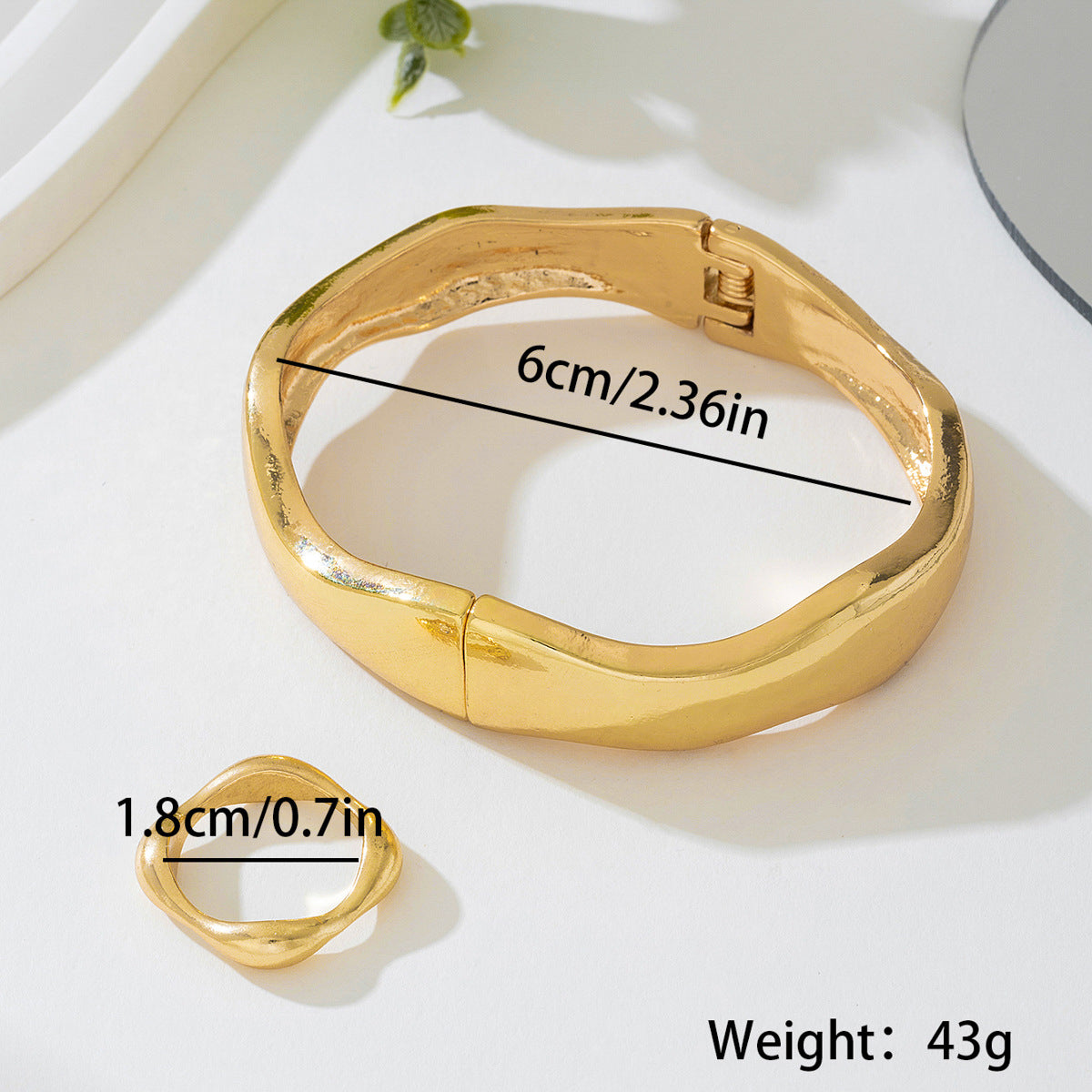 1 Set of Fashionable Personality Versatile Simple Retro Metal Wavy Spring Buckle Women's Bracelet Ring Jewelry Set by Planderful delivers a chic and contemporary appeal for fashion enthusiasts seeking versatile accessories.