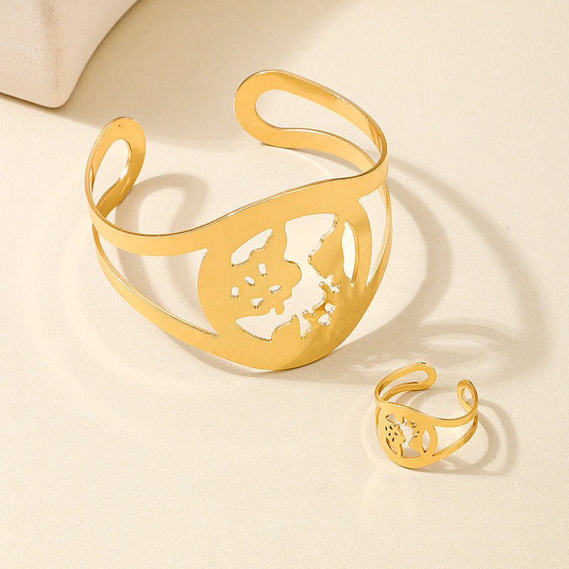 1 Set of Personalized Creative Festival Atmosphere European and American Style Metal Map Hollow Opening Women's Bracelet Ring Jewelry Set by Planderful delivers a stunning blend of artistry and elegance for fashion-forward individuals looking to express their unique style.