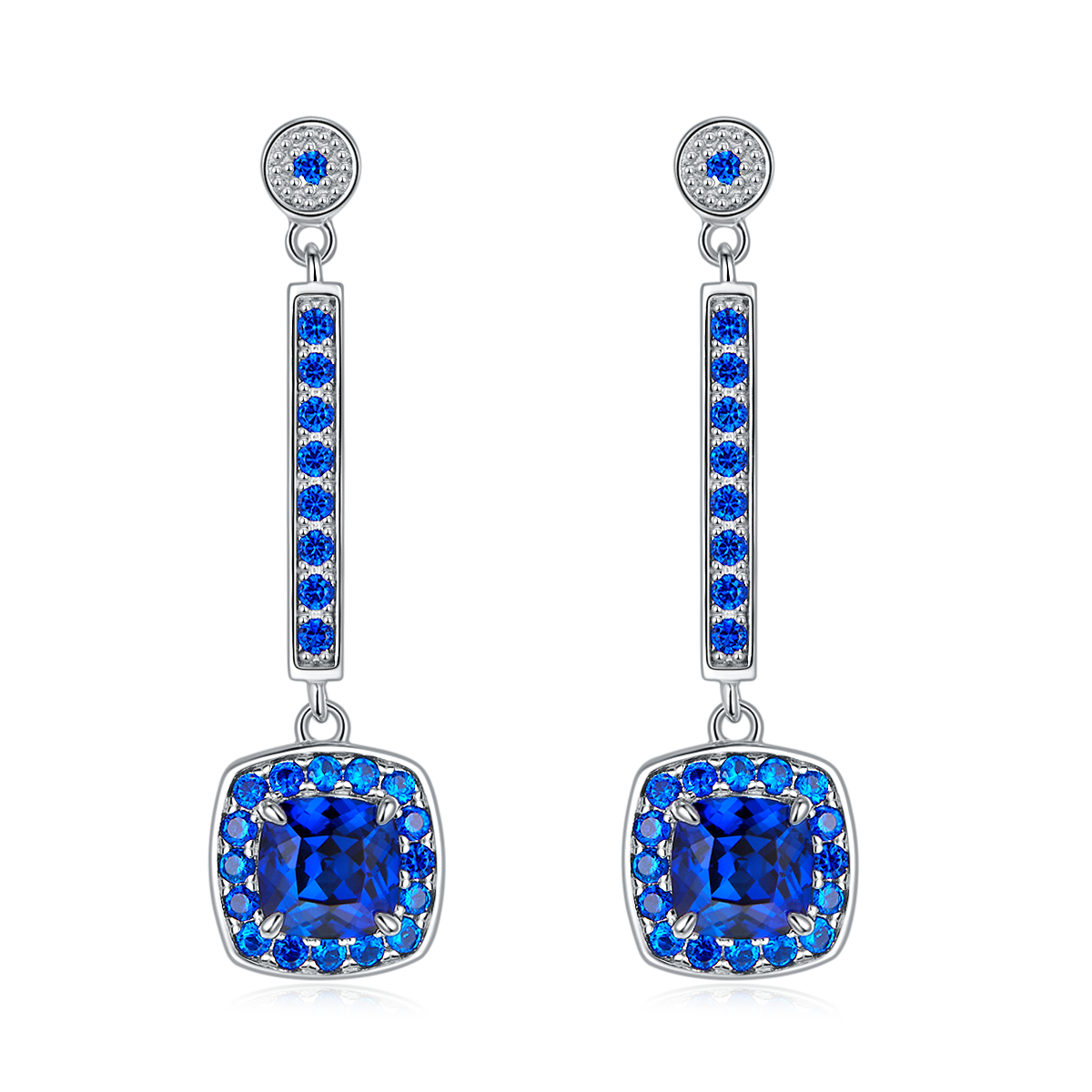 Introducing the stunning 2.0 Carat Cushion Cut Lab Created Sapphire Long Drop Earrings, a perfect blend of sophistication and modern design. Crafted with precision, these earrings are designed to make you stand out on any occasion.