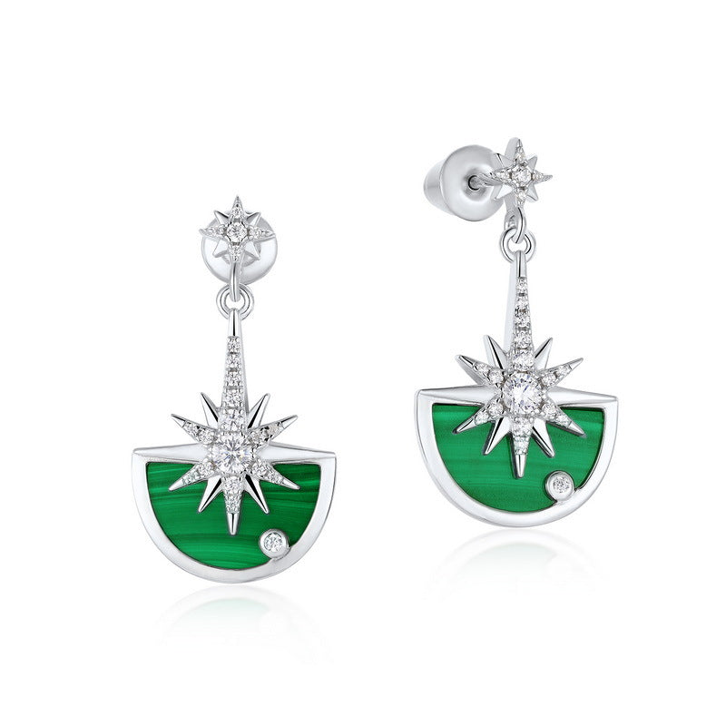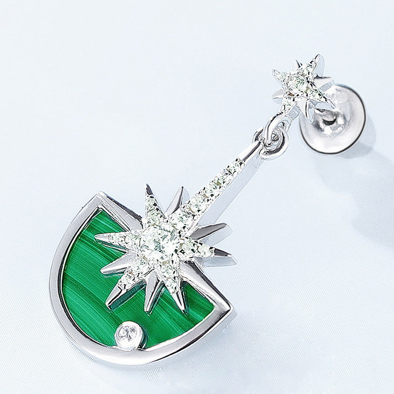 Zircon Stars Semicircle Malachite Pendant Sterling Silver Drop Earrings