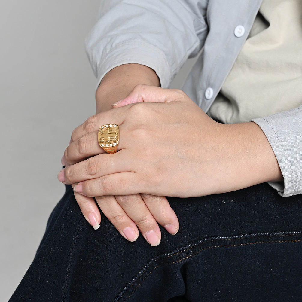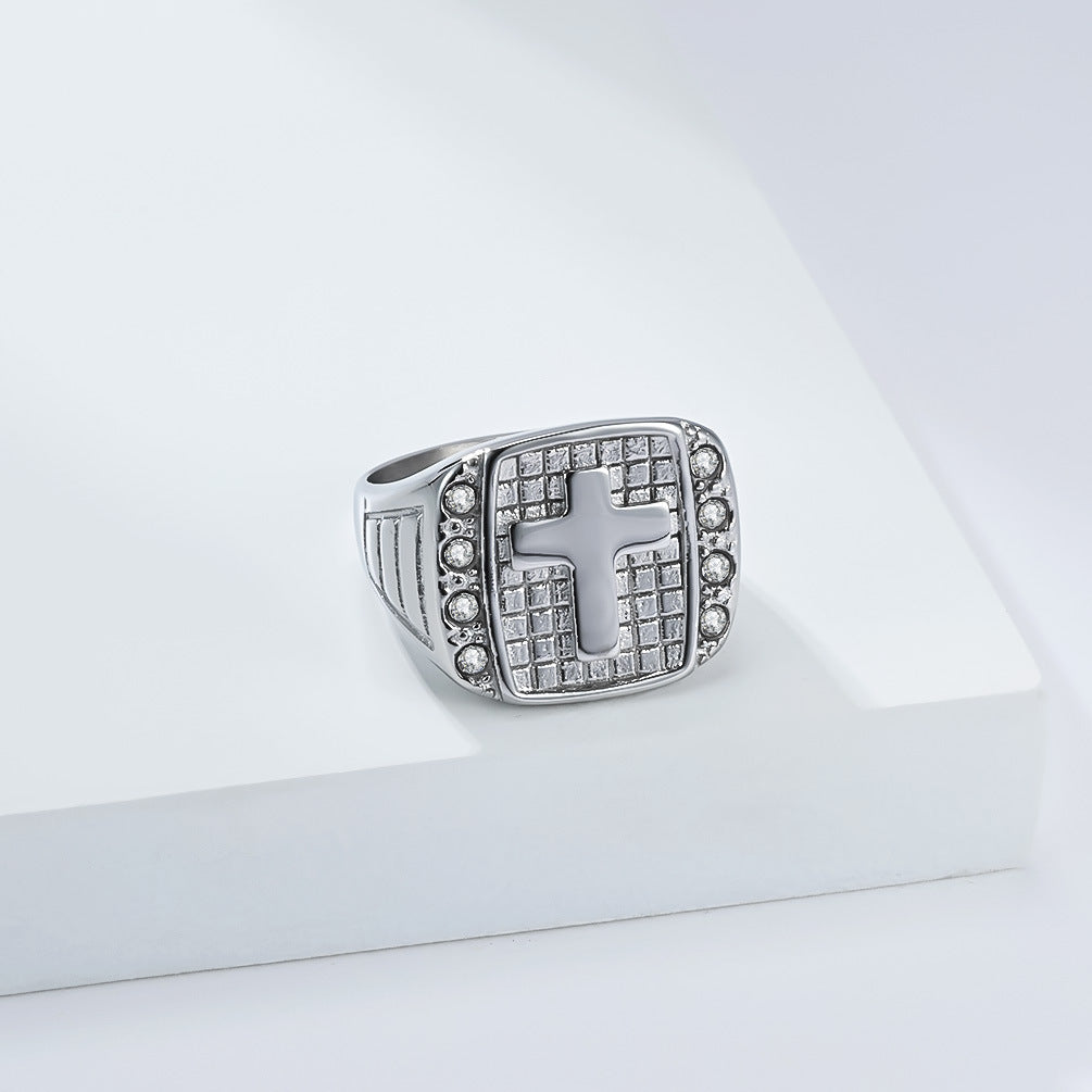Stainless Steel Cross Ring For Men Durable Trendy Autumn Design Planderful For Bold Gents