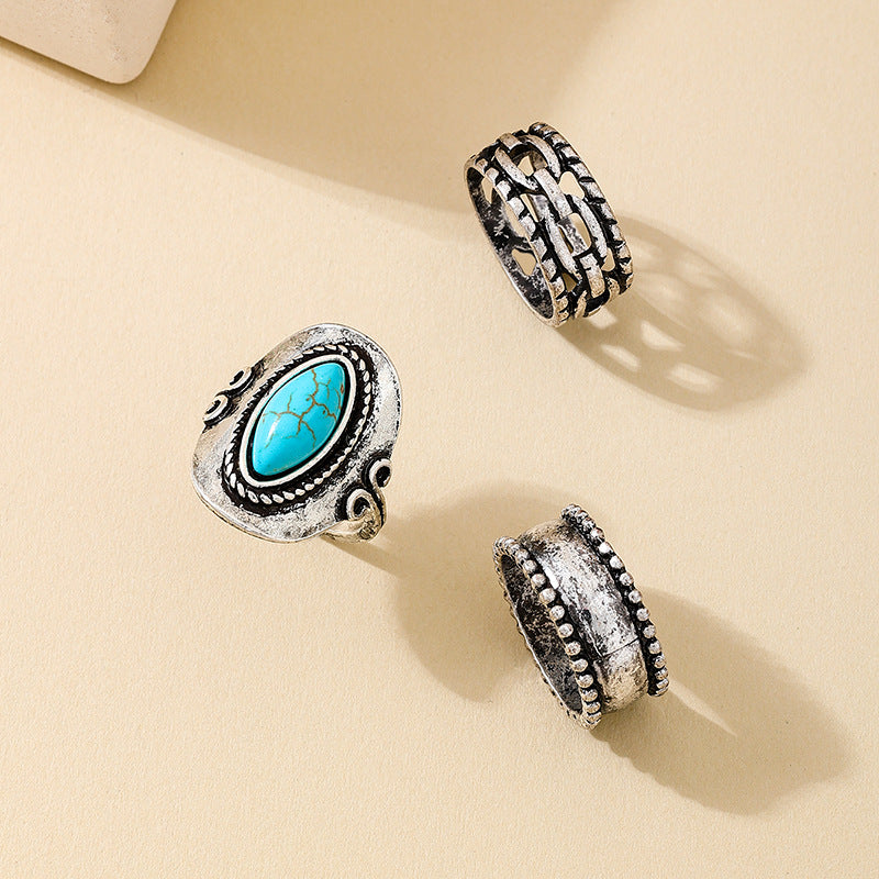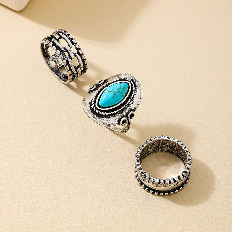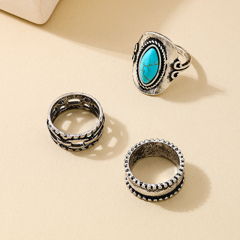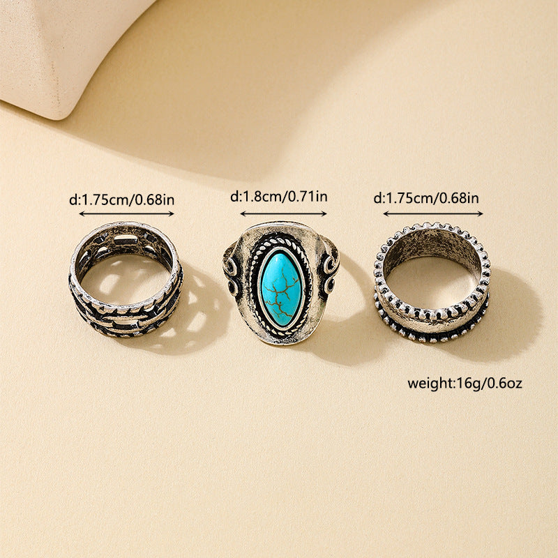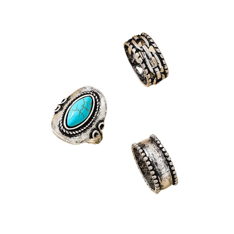 Elevate your accessory game with the stunning 3-piece fashionable retro old European and American street metal hollow lace turquoise western cowboy hat women's ring. This exquisite collection from Planderful, named Vienna Verve, seamlessly blends classic elegance with modern flair, making it a must-have for any jewelry enthusiast.