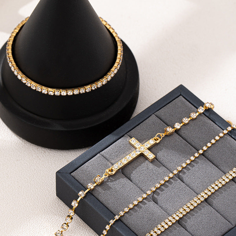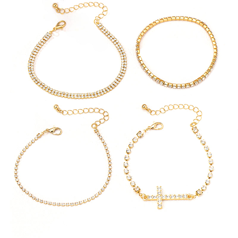 4 European and American Fashion Temperament Simple Banquet Style Metal Cross Zircon-Encrusted Women's Bracelet Set by Planderful delivers an elegant and stylish accessory for both everyday wear and special occasions.