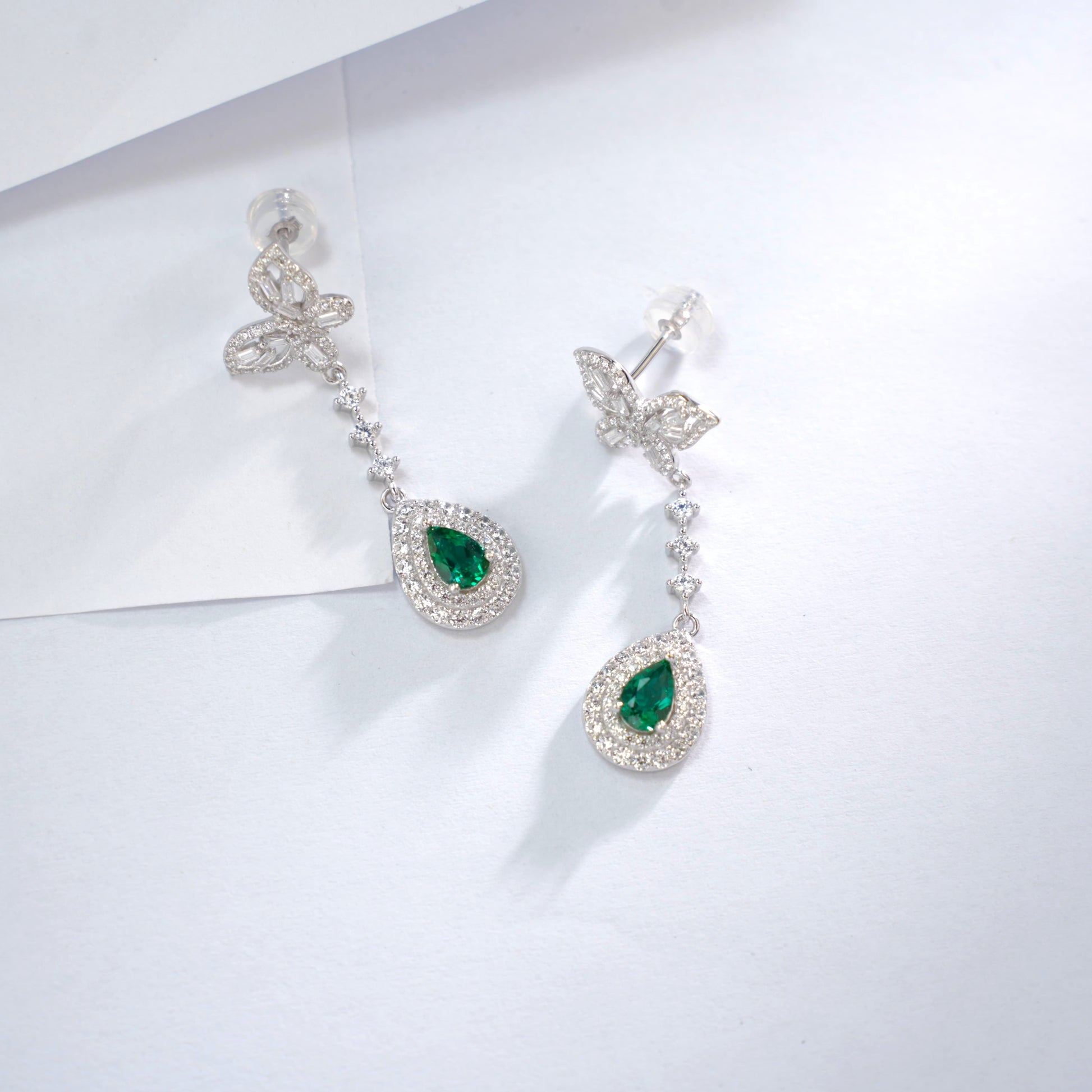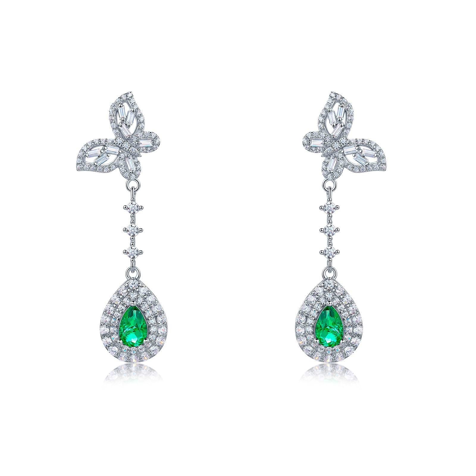 Planderful Lab Grown Gemstone Pear Drop Earrings With Double Halo Butterfly Long Drop For Women