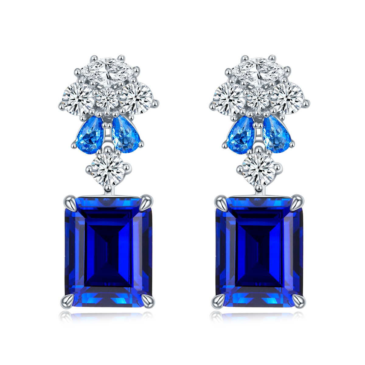 Discover the Elegance of Our 8.0 Carat Rectangular Lab Created Sapphire Pendant S925 Silver Plated Platinum Drop Earrings