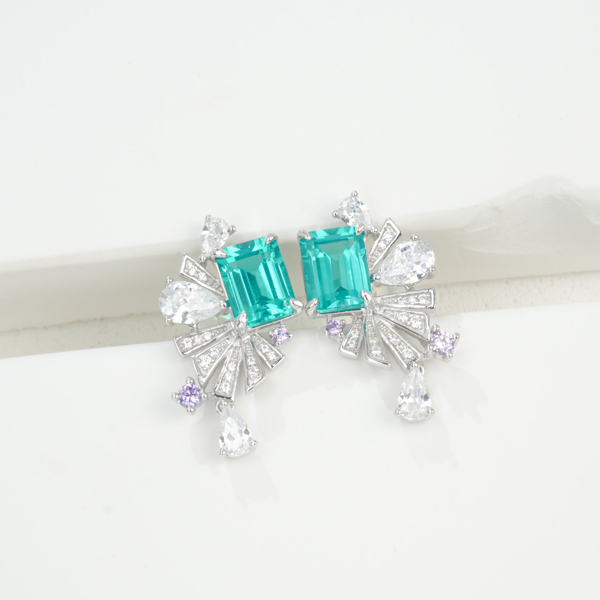 Planderful Lab Grown Gemstone Earrings Colourful 8x6mm 4.86CT Dancing Fireworks S925 Silver Plated For Women