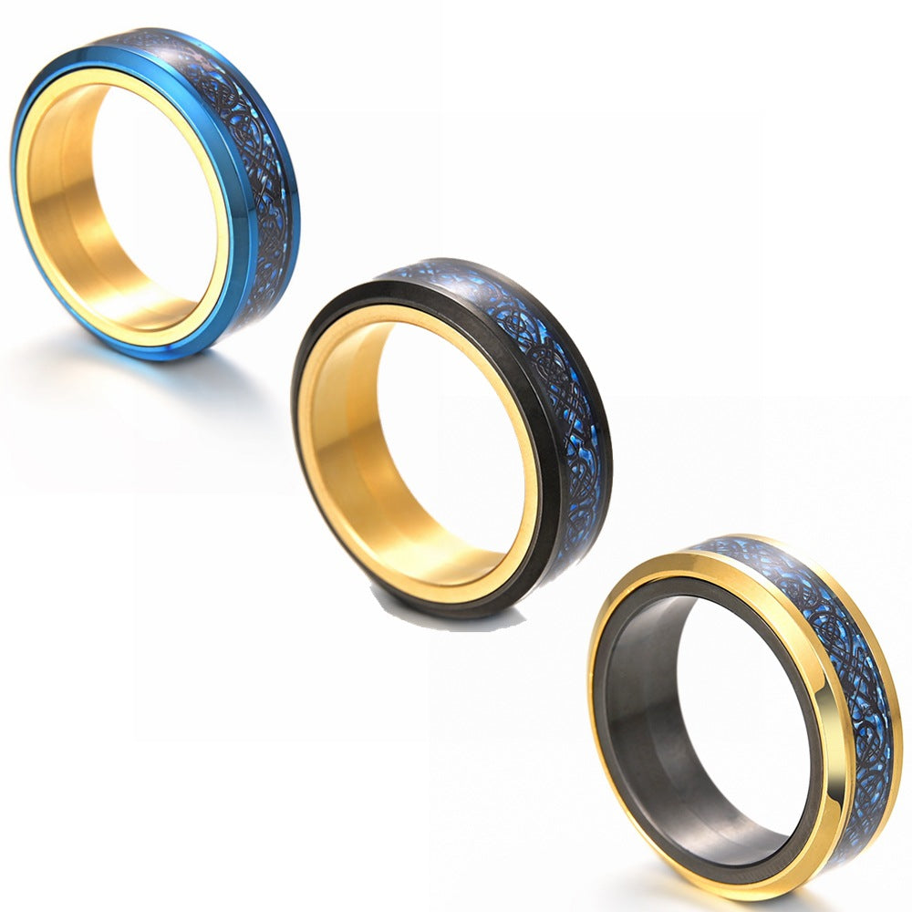 8mm Titanium Steel Dragon Pattern Men's Ring with Rotating Pressure Relief Design